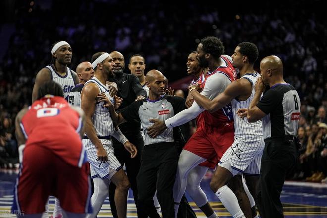 本场比赛简单回顾:首节比赛开打,魔术队率先发力连得4分抢占先机,76人随即调整战术紧咬比分。整个首节对抗强度拉满,双方频频通过罚球取分,场面陷入胶着。真正的转折点出现在次节轮换阶段:魔术替补阵容掀起一波14-4的进攻高潮,瞬间将分差拉开至两位数。新秀布莱克状态火热,仅出战12分钟便刷新个人生涯得分纪录。76人防守体系彻底崩盘,被魔术单节狂轰51分。节末双方爆发激烈冲突,贝恩、沃克、小卡特和德拉蒙德各领一次技术犯规,萨格斯则因累计两次技犯遭驱逐。半场战罢,76人已落后26分。