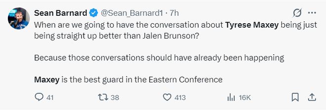 NBA记者Sean Branard写道:我们应该好好聊聊一个问题,那就是马克西与布伦森两人谁更出色,我认为马克西已经是东部最出色的后卫。