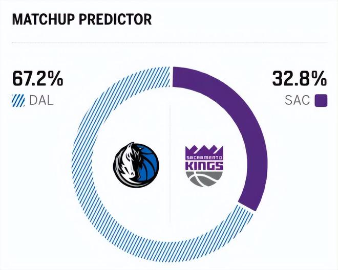 赛前,美媒ESPN对本场比赛进行了胜率预测,独行侠队胜率高达67.2% ,国王胜率则仅有32.8%,虽然同为西部倒数,但差距却非常明显。
